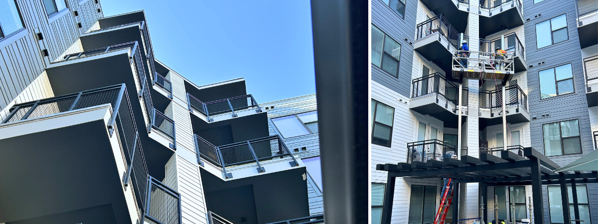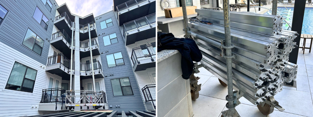 The Lock at Flatirons is a multi-story residential apartment complex in Broomfield, Colorado. The building features modern architecture and a central courtyard for residents to enjoy. This contractor was hired to perform maintenance work caulking the balconies. While the task seemed straightforward, the building’s design and site constraints created significant access challenges for the crew. Learn how BrandSafway and ReechCraft provided the ideal access solution on this apartment maintenance job.