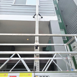 With these constraints adding up, BrandSafway and the contractor turned to the ReechCraft PowerMast, a modular climbing system designed for tight spaces and complex facades. The PowerMast wall-tied system allowed the team to access the face of the balconies by working around architectural projections efficiently, all while staying within budget and avoiding costly delays.
